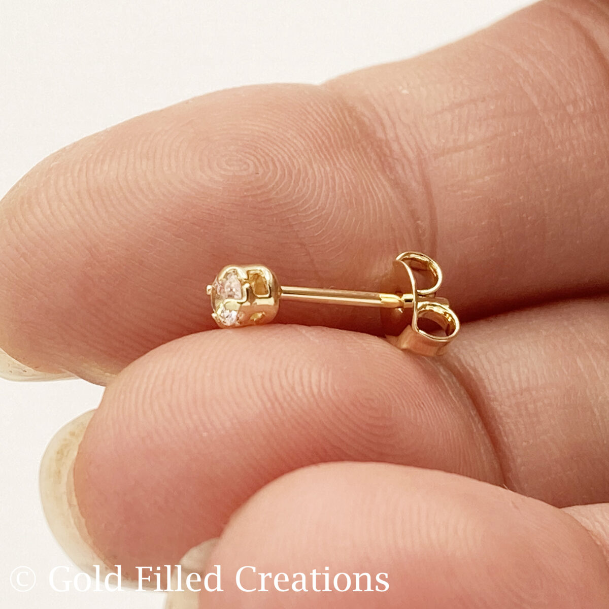 Gold Filled Clear Round CZ Cubic Zirconia Stone Stud Earrings 3.5mm , gold Cubic Zirconia stud earring , gold fill Jewellery Earrings studs , Dainty Stud , Gift For Her , Minimalist Earrings , nuts / clutches included , choose quantity 2 10 30 pieces 20% discount included in the listing , OR 0014 ,