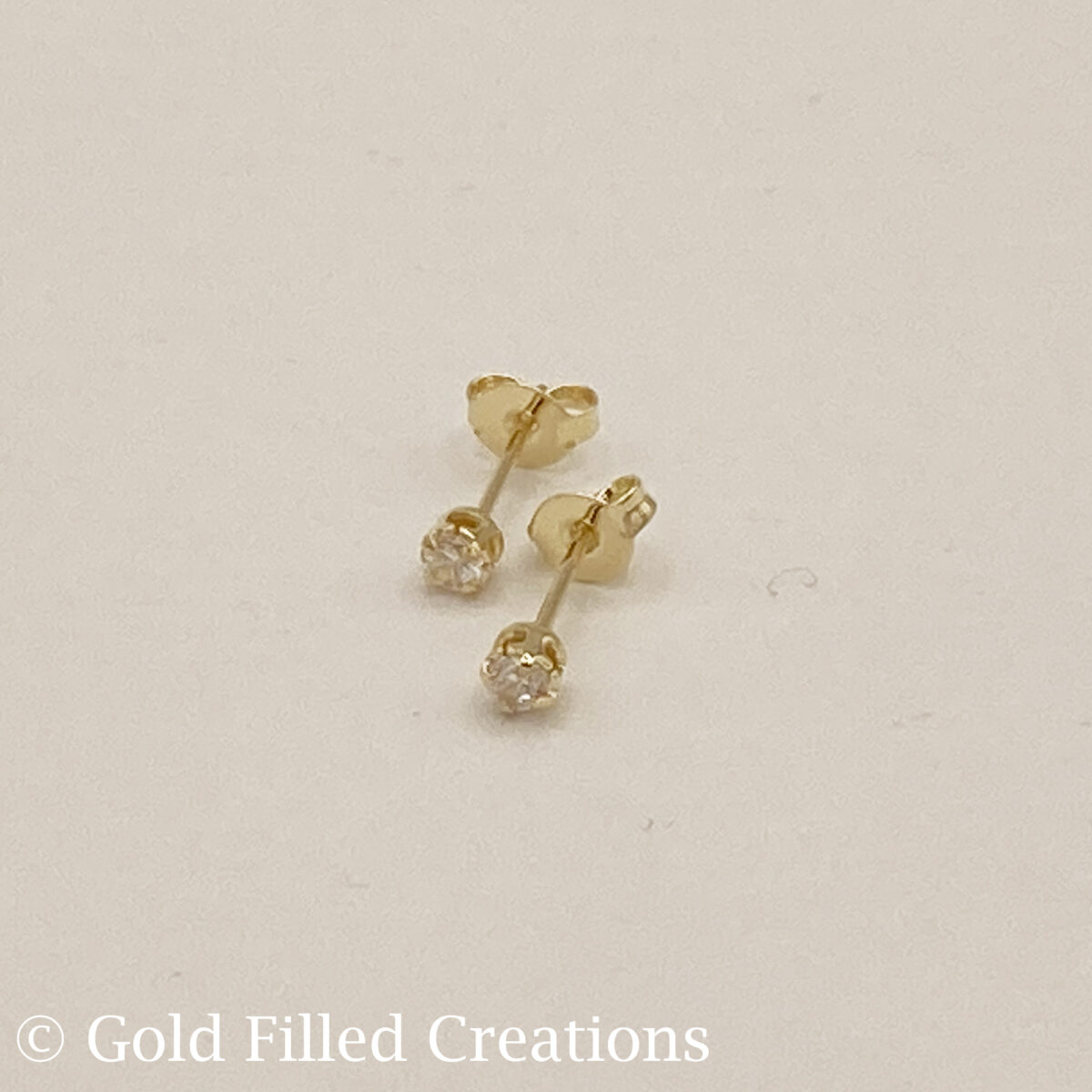 Gold Filled Clear Round CZ Cubic Zirconia Stone Stud Earrings