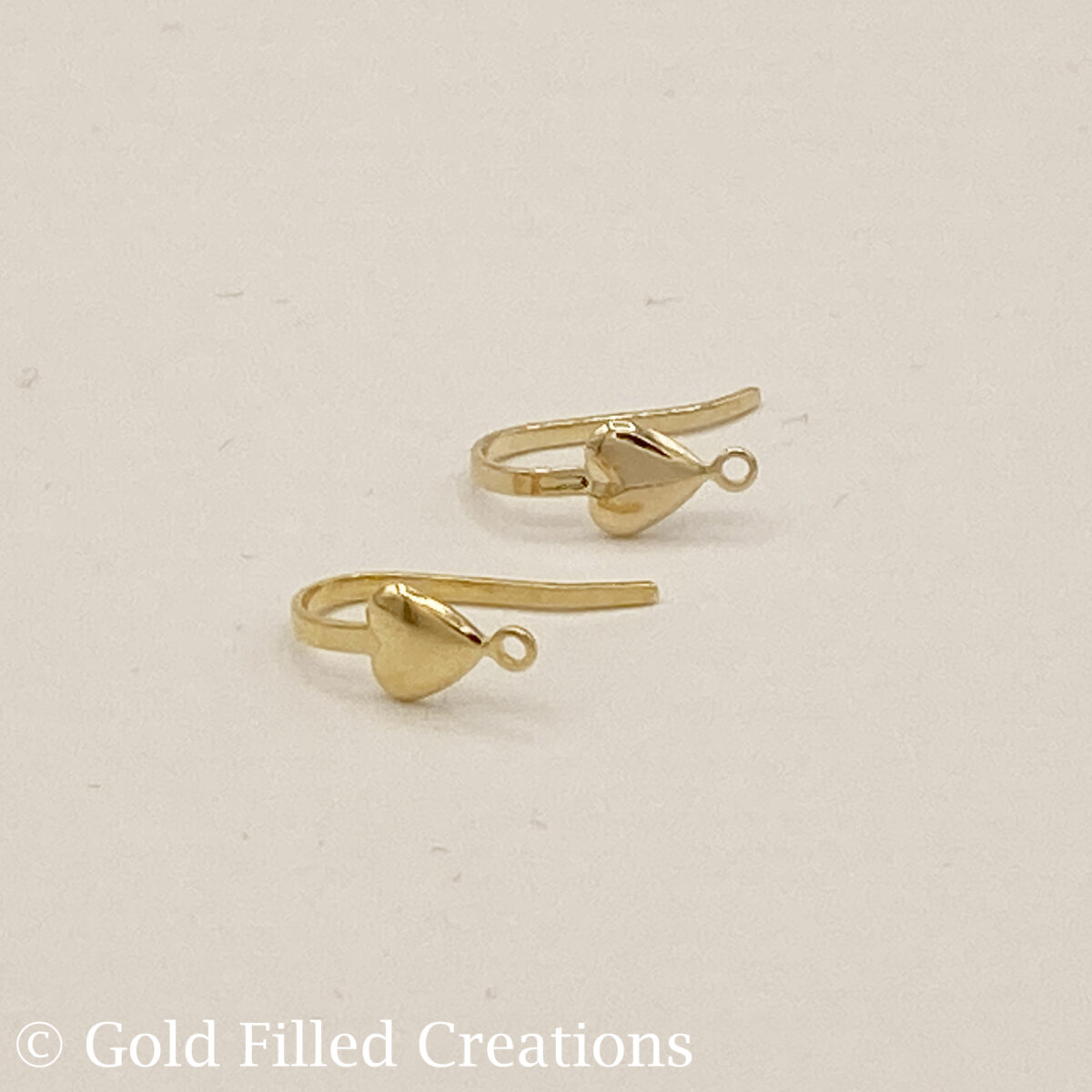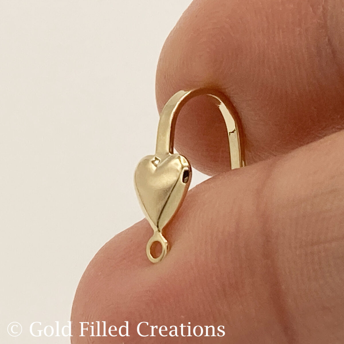 Gold filled ear hook earrings heart , gold fill heart earrings , jewelry  making earrings , Earring Components , DIY Jewelry Making , Hypoallergenic , Lead and nickel free ,