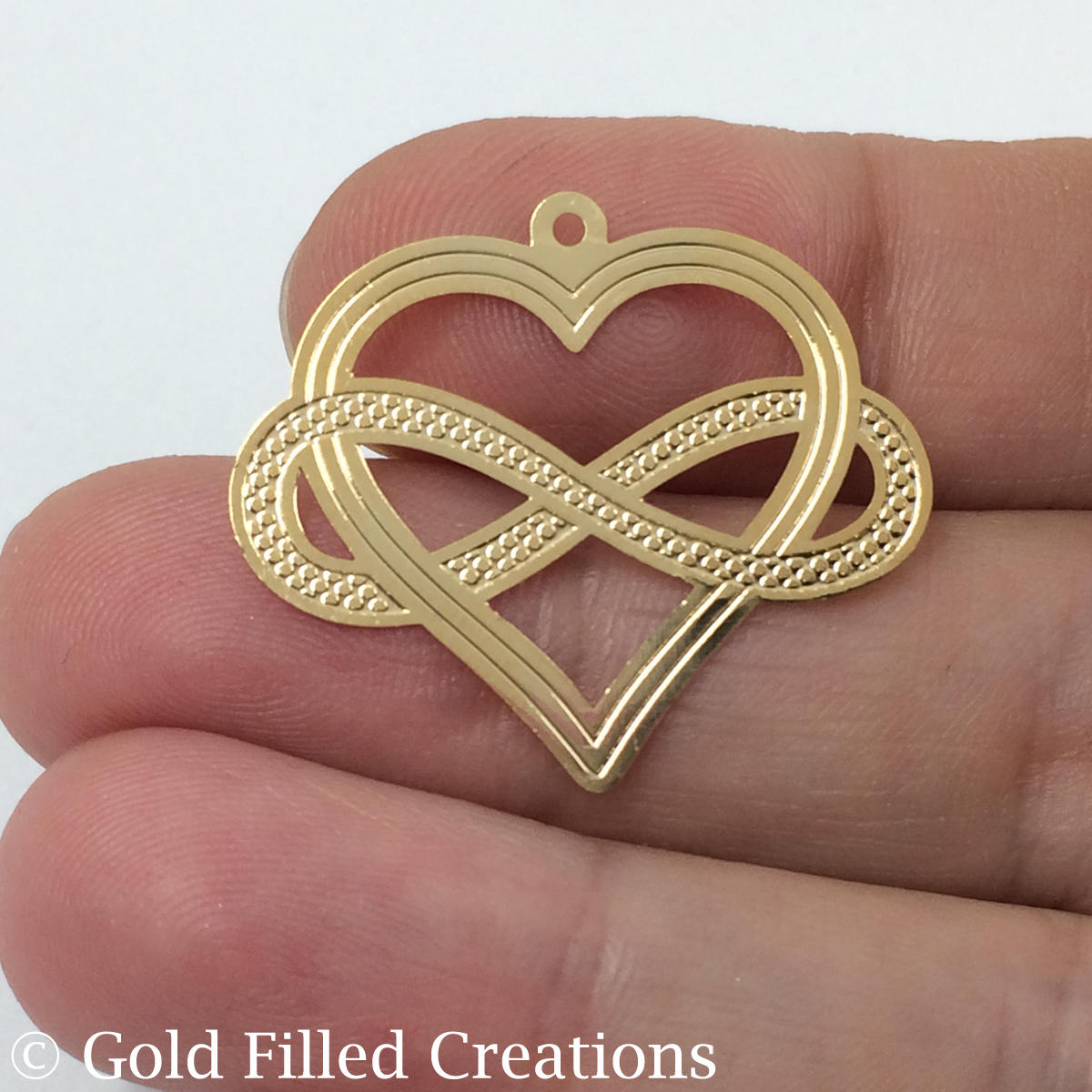 Gold filled Infinity Heart pendants charms , 2 10 30 50 150 pieces 40% discount included in the listing , yellow gold Infinity Heart pendant , gold fill Infinity Heart pendant , gold Infinity Heart charms , Wholesale Jewelry making , gold charms bulk , SKU-A0190 ,