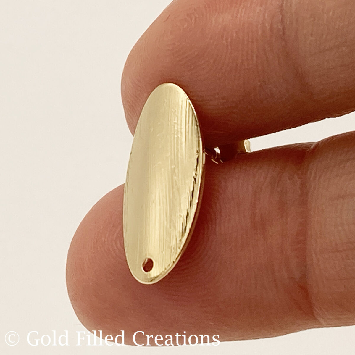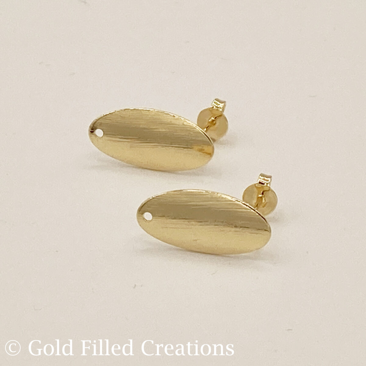 Studs oval earrings Brushed Gold filled DIY Jewelry Making , 4 10 30 pieces 20% discount included in the listing , gold Oval Ear Studs Earring , gold fill Oval Shape stud earrings post , Supplies For Earring Making , Earrings Findings Components , Hypoallergenic , Lead and nickel free , erar nuts / clutches included , SKU-90047 ,